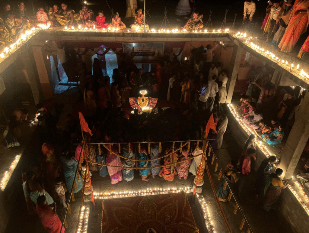 ಪೈಪೋಟಿ ಕೊಡುವಂತಿತ್ತು ಎಣ್ಣೆ ಬತ್ತಿಯ ಬೆಳಕು. ಕರ್ನಾಟಕ ಭೂಪಟ, ಲಕ್ಷ ದೀಪೋತ್ಸವ ಸೇರಿದಂತೆ ವಿವಿಧ ಅಕ್ಷರಗಳ ಮಾದರಿಯಲ್ಲಿ ಬಣ್ಣ ಬಣ್ಣದ ರಂಗೋಲಿ ಹಾಕಿ, ಹಚ್ಚಲಾದ ಸಾಲು ಹಣತೆಗಳ ಬೆಳಕಲ್ಲಿ ಮಂಗಲಗಿ ಮಠ ಕಂಗೊಳಿಸಿತು.