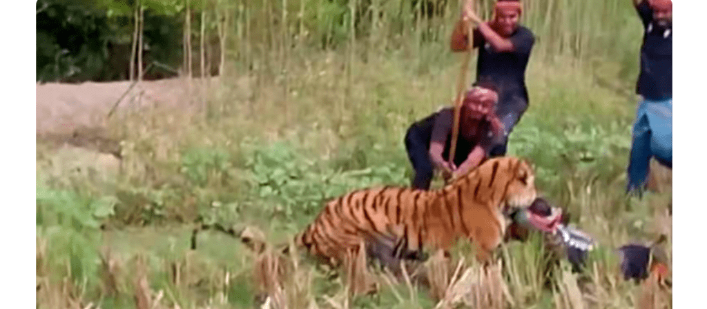 ಎಂಟರಿಂದ ಹತ್ತು ಅರಣ್ಯ ಇಲಾಖೆಯ ಸಿಬ್ಬಂದಿ ಹುಲಿಯನ್ನು ಮತ್ತೆ ಕಾಡಿಗೆ ಓಡಿಸಲು ಪ್ರಯತ್ನಿಸುತ್ತಿದ್ದರು. ಇದ್ದಕ್ಕಿದ್ದಂತೆ ಹುಲಿ ಸಿಬ್ಬಂದಿ ಕಡೆಗೆ ಬಂದಿದೆ. ಈ ವೇಳೆ ಅವರು ಕಿರುಚಿದ್ದಾರೆ. ಈ ವೇಳೆ ಹುಲಿ ಒಬ್ಬರ ಮೇಲೆ ಎರಗಿದೆ. ಅಷ್ಟರಲ್ಲೇ ಅಲ್ಲೇ ಇದ್ದ ಸಹೋದ್ಯೋಗಿಗಳು ಕೋಲುಗಳಿಂದ ಹುಲಿಗೆ ಬಡಿದಿದ್ದಾರೆ. ಈ ವೇಳೆ ಹುಲಿ ಆ ವ್ಯಕ್ತಿಯನ್ನು ಬಿಟ್ಟು ಕಾಡಿಗೆ ಓಡಿಹೋಗಿದೆ.