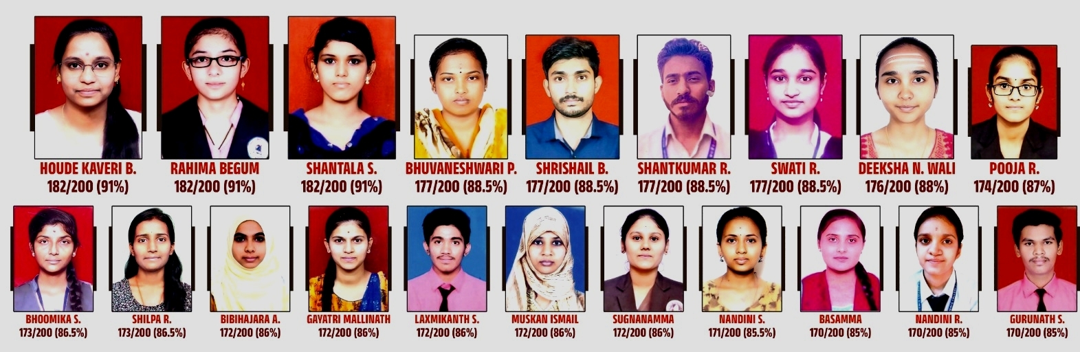 ಕರ್ನಾಟಕ ಶಾಲಾ ಪರೀಕ್ಷೆ ಮತ್ತು ಮೌಲ್ಯನಿರ್ಣಯ ಮಂಡಳಿ ಕಳೆದ ಅಗಷ್ಟನಲ್ಲಿ ಪರೀಕ್ಷೆ ನಡೆಸಲಾಗಿತ್ತು, ಪರೀಕ್ಷೆಗೆ ಹಾಜರಾದ 181 ವಿದ್ಯಾರ್ಥಿಗಳಲ್ಲಿ 176 ವಿದ್ಯಾರ್ಥಿಗಳು ಉತ್ತೀರ್ಣರಾಗಿದ್ದಾರೆ. ಕಾವೇರಿ ಬಿ. ಹೌದೆ (ಶೇ.91),ರಹಿಮಾ ಬೇಗಂ (ಶೇ.91), ಶಾಂತಲಾ ಎಸ್.(ಶೇ.91), ಭುವನೇಶ್ವರಿ ಪಿ.(ಶೇ.88.5),ಶ್ರೀಶೈಲ ಬಿ.(ಶೇ.88.5), ಶಾಂತಕುಮಾರ ಆರ್.(ಶೇ.88.5, ಸ್ವಾತಿ ಆರ್.(ಶೇ.88.5), ದೀಕ್ಷಾ ಎನ್. (ಶೇ.88), ಪೂಜಾ ಆರ್. (ಶೇ.87), ಭೂಮಿಕಾ ಎಸ್. (ಶೇ.86.5), ಶಿಲ್ಪಾ ಆರ್.(ಶೇ.86.5), ಬೀಬಿ ಹಜ್ರಾ (ಶೇ.86), ಗಾಯತ್ರಿ (ಶೇ.86), ಲಕ್ಷಿö್ಮÃಕಾಂತ (ಶೇ.86), ಮುಸ್ಕಾನ್ (ಶೇ.86), ಸುಜ್ಞಾನಮ್ಮ (ಶೇ.86), ನಂದಿನಿ (ಶೇ.85.5), ಬಸಮ್ಮ (ಶೇ.85), ನಂದಿನಿ ಆರ್ (ಶೇ.85), ಗುರುನಾಥ ಎಸ್. (ಶೇ.85) ಹೀಗೆ ಒಟ್ಟು 20 ವಿದ್ಯಾರ್ಥಿಗಳು ಡಿಸ್ಟಿಂಕ್ಷನ್ನಲ್ಲಿ ಉತ್ತೀರ್ಣರಾಗಿರುವುದು ವಿಶೇಷತೆಯಾಗಿದೆ. ಜೊತೆಗೆ 75 ವಿದ್ಯಾರ್ಥಿಗಳು ಪ್ರಥಮ, 63 ವಿದ್ಯಾರ್ಥಿಗಳು ದ್ವಿತೀಯ ಮತ್ತು 18 ವಿದ್ಯಾರ್ಥಿಗಳು ತೃತೀಯ ದರ್ಜೆಯಲ್ಲಿ ಉತ್ತೀರ್ಣರಾಗಿದ್ದಾರೆ ಎಂದರು.
