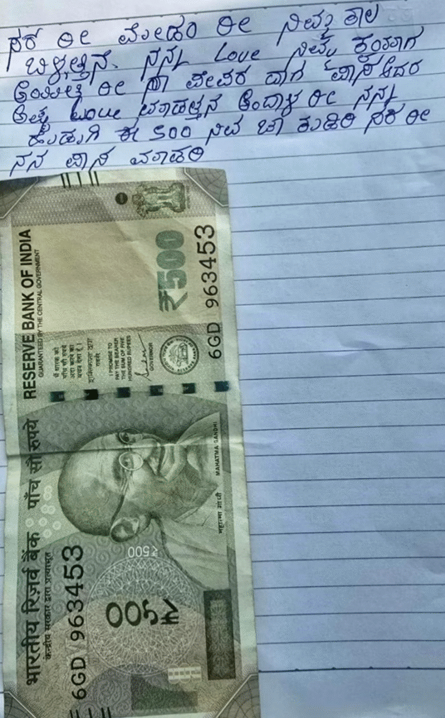 ಸರ್/ಮೇಡಂ ಅವರೆ, ನಿಮ್ಮ ಕಾಲು ಬೀಳ್ತಿನಿ. ನನ್ನ LOVE ನಿಮ್ಮ ಕೈಯಲ್ಲಿದೆ. ಎಸ್ಎಸ್ಎಲ್ಸಿ ಪರೀಕ್ಷೆಯಲ್ಲಿ ಪಾಸ್ ಆದ್ರೆ ಮಾತ್ರ ನನ್ನ ಹುಡುಗಿ ಲವ್ ಮಾಡ್ತಿನಿ ಅಂದಾಳೆ. ಹೀಗಾಗಿ ಈ 500 ರೂ ಹಣದಲ್ಲಿ ಚಹಾ ಕುಡಿರಿ. ಪರೀಕ್ಷೆಯಲ್ಲಿ ನನ್ನ ಪಾಸ್ ಮಾಡಿ ಎಂದು ಕೇಳಿಕೊಂಡಿದ್ದಾನೆ. ಜೊತೆಗೆ 500 ರೂ ನೋಟನ್ನು ಉತ್ತರಪತ್ರಿಕೆಗೆ ಅಂಟಿಸಿದ್ದಾನೆ. ಈ ಫೋಟೋ ಸಾಮಾಜಿಕ ಮಾಧ್ಯಮಗಳಲ್ಲಿ ಭಾರಿ ವೈರಲ್ ಆಗಿದೆ.