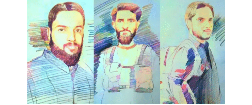 ಆಸಿಫ್ ಫೌಜಿ, ಸುಲೇಮಾನ್ ಶಾ ಮತ್ತು ಅಬು ತಲ್ಹಾ ಈ ರೇಖಾಚಿತ್ರದಲ್ಲಿ ತೋರಿಸಲಾಗಿರುವ 3 ಶಂಕಿತ ಭಯೋತ್ಪಾದಕರ ಹೆಸರುಗಳು ಎಂದು ಎನ್ಐಎ ತಿಳಿಸಿದೆ.