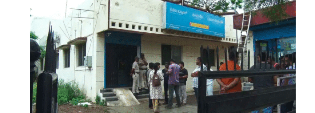 ಕಳೆದ ತಿಂಗಳು ಮೇ.25 ರಂದು ವಿಜಯಪುರ ಜಿಲ್ಲೆ ಬಸನವನಬಾಗೇವಾಡಿ ತಾಲೂಕಿನ ಮನಗೂಳಿ ಪಟ್ಟಣದಲ್ಲಿರುವ ರಾಷ್ಟ್ರೀಕೃತ ಕೆನರಾ ಬ್ಯಾಂಕ್ನಲ್ಲಿ ಕಳ್ಳತನವಾಗಿತ್ತು. ಬ್ಯಾಂಕ್ನಲ್ಲಿ ಕಳ್ಳತನವಾದ ಸುದ್ದಿ ತಿಳಿದು ಮನಗೂಳಿ ಪೊಲೀಸರು, ಎಸ್ಪಿ ಲಕ್ಷ್ಮಣ ನಿಂಬರಗಿ, ಎಎಸ್ಪಿ ರಾಮನಗೌಡ ಹಟ್ಟಿ ಹಾಗೂ ಇತರೆ ಸಿಬ್ಬಂದಿ, ಶ್ವಾನದಳ ಮತ್ತು ಬೆರಳಚ್ಚು ತಂಡ ಸ್ಥಳಕ್ಕೆ ದೌಡಾಯಿಸಿ ಪರಿಶೀಲನೆ ನಡೆಸಿದರು.