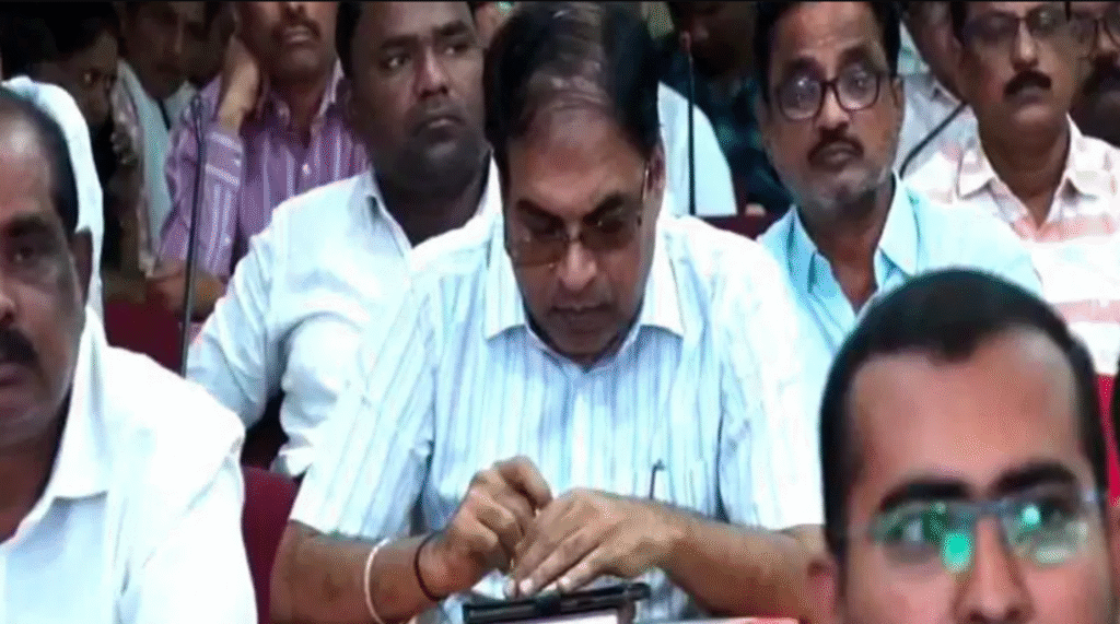 ರಾಯಚೂರು: ಜಿಲ್ಲಾ ಪಂಚಾಯಿತಿ ಸಭಾಂಗಣದಲ್ಲಿ ನಡೆದ ಕೆಡಿಪಿ ಸಭೆಯಲ್ಲಿ ಜಿಲ್ಲಾ ಮಟ್ಟದ ಅಧಿಕಾರಿಯೊಬ್ಬರು ಮೊಬೈಲ್ ನಲ್ಲಿ ರಮ್ಮಿ ಆಟದಲ್ಲಿ ಮಗ್ನರಾಗಿದ್ದರು. ಅಧಿಕಾರಿಯ ವರ್ತನೆಗೆ ಗರಂ ಆಗಿರುವ ಜಿಲ್ಲಾ ಉಸ್ತುವಾರಿ ಸಚಿವ ಡಾ.ಶರಣಪ್ರಕಾಶ ಪಾಟೀಲ ಅಧಿಕಾರಿ ವಿರುದ್ಧ ಕ್ರಮಕ್ಕೆ ಸೂಚಿಸಿದ್ದಾರೆ.