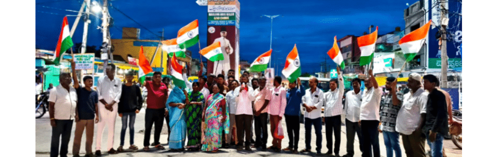 ವಾಡಿ: ಪಟ್ಟಣದ ಮೌಲಾನಾ ಅಬ್ದುಲ್ ಕಲಾಂ ಅಜಾದ್ ವೃತ್ತದಲ್ಲಿ ಬಿಜೆಪಿ ಪಕ್ಷದ ಮುಖಂಡರು ಶನಿವಾರ 26ನೇ ಕಾರ್ಗಿಲ್ ವಿಜಯ ದಿನಾಚರಣೆ ನಿಮಿತ್ಯ ರಾಷ್ಟ್ರ ಧ್ವಜದೊಂದಿಗೆ ಸಂಭ್ರಮಿಸಿದರು.
