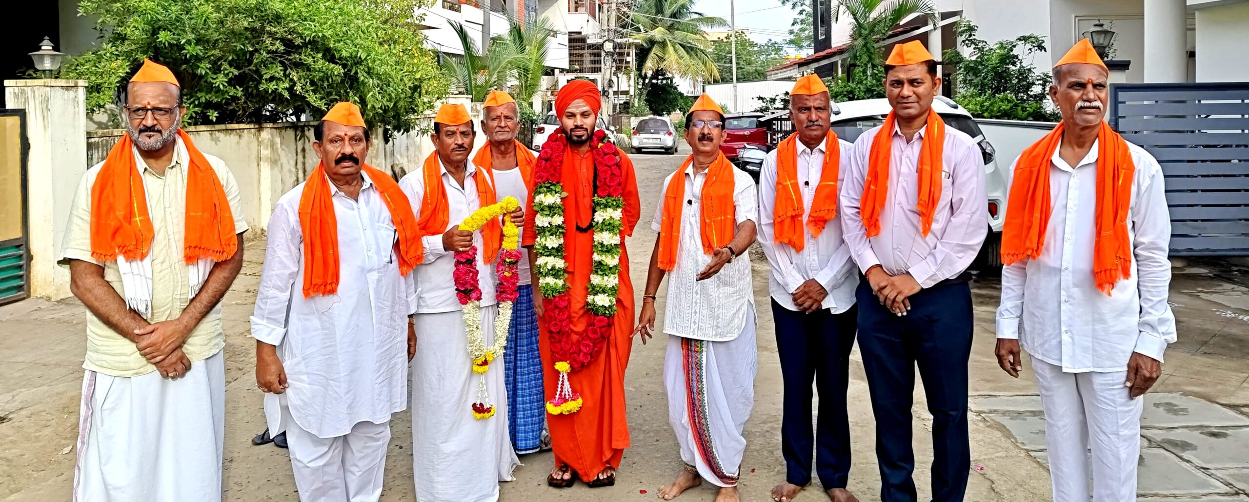 ರುದ್ರಾಕ್ಷಿ ಧಾರಣೆ ಕಾರ್ಯಕ್ರಮದ ಪ್ರಥಮ ಭಕ್ತರಾದ ಸೊಸೈಟಿ ಕಾರ್ಯದರ್ಶಿ ಶಿವರಾಜ ಅಂಡಗಿಯವರು ಈ ಸದ್ಭಾವನಾ ಪಾದಯಾತ್ರೆಯಲ್ಲಿ ಭಾಗವಹಿಸಲು ಬಂದ ಎಲ್ಲಾ ಭಕ್ತರಿಗೆ ಸನಾತನ ಧರ್ಮದ ಭಗವಾ ಟೋಪಿ ಮತ್ತು ಟವೆಲ್ ಹಾಕುವ ಮೂಲಕ ಸ್ವಾಗತಿಸಿದರು.
