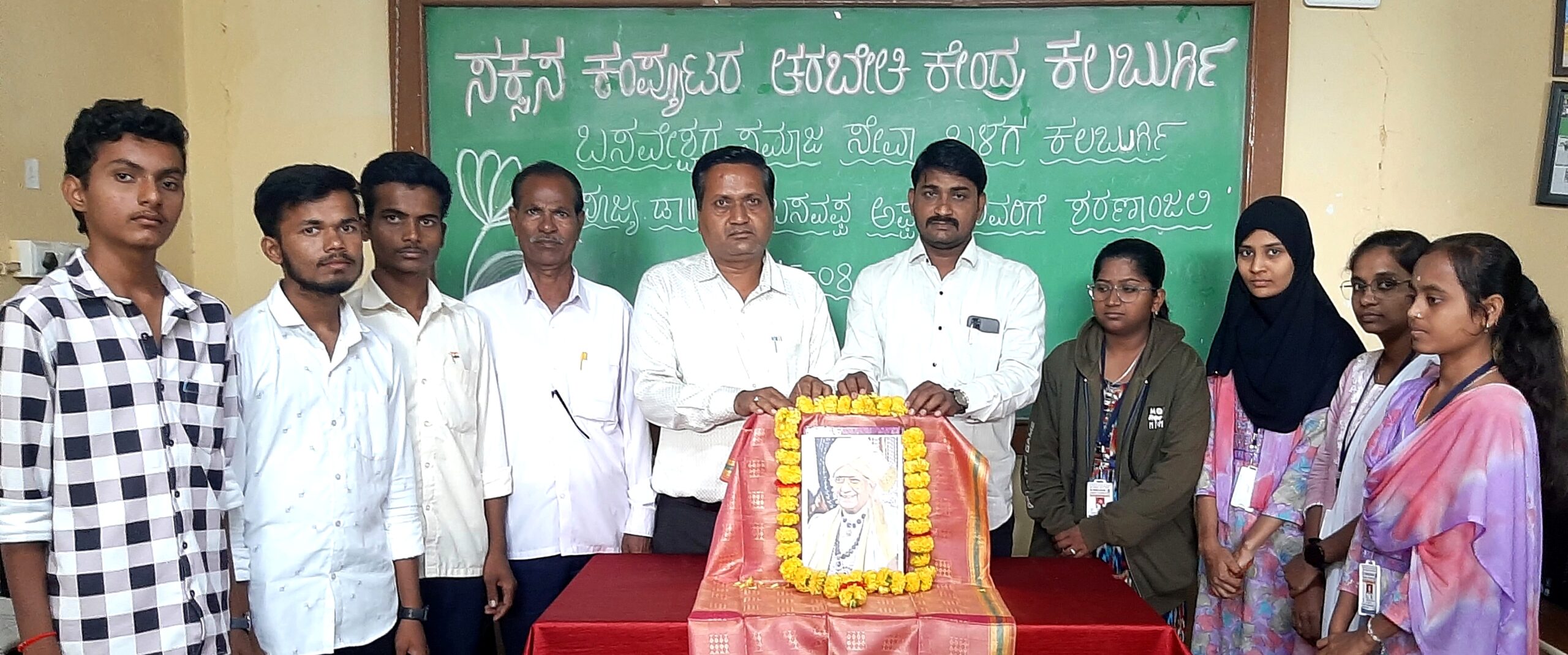ಕಲಬುರಗಿ: ನಗರದ ಆಳಂದ ರಸ್ತೆಯ ಜೆ.ಆರ್ ನಗರದಲ್ಲಿನ ಸಕ್ಸಸ್ ಕಂಪ್ಯೂಟರ ತರಬೇತಿ ಕೇಂದ್ರದಲ್ಲಿ ಬಸವೇಶ್ವರ ಸಮಾಜ ಸೇವಾ ಬಳಗದ ವತಿಯಿಂದ ಶುಕ್ರವಾರ ಪೂಜ್ಯ ಡಾ.ಶರಣಬಸವಪ್ಪ ಅಪ್ಪಾಜಿ ಅವರಿಗೆ ಭಕ್ತಿಯ ಶರಣಾಂಜಲಿ ಸಲ್ಲಿಸಲಾಯಿತು.