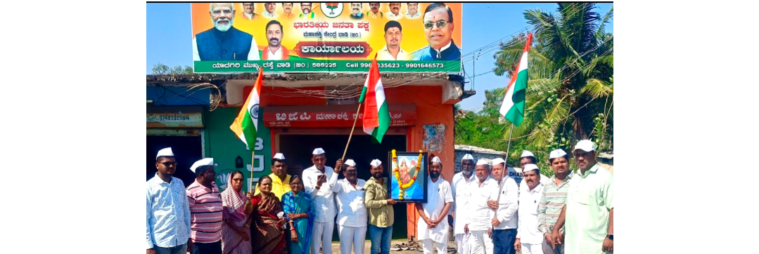 ವಾಡಿ: ವಂದೆ ಮಾತರಂ ಗೀತೆಯ 150ನೇ ವರ್ಷಾಚರಣೆಯನ್ನು ಪಟ್ಟಣದ ಬಿಜೆಪಿ ಕಚೇರಿಯಲ್ಲಿ ಮುಖಂಡರು ಭಾರತಾಂಬೆಗೆ ಪುಷ್ಪ ನಮನ ಸಲ್ಲಿಸಿ, ಸಾಮೂಹಿಕವಾಗಿ ವಂದೆ ಮಾತರಂ ಜಯ ಘೋಷ ಕೂಗಿ ಸಂಭ್ರಮಿಸಿದರು.