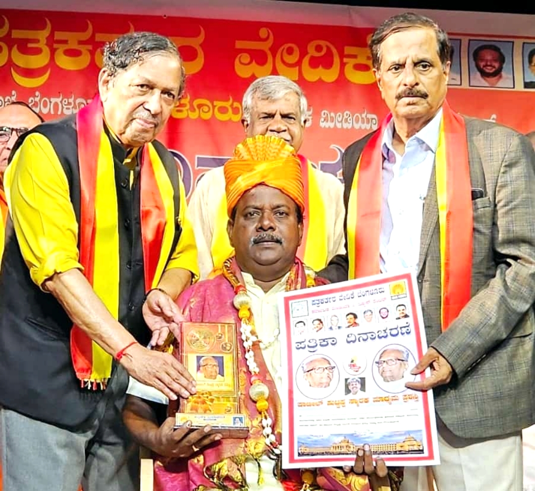 ನಗರದ ನಯನ ಸಭಾಂಗಣದಲ್ಲಿ ಪತ್ರಕರ್ತರ ವೇದಿಕೆ ಬೆಂಗಳೂರ ವತಿಯಿಂದ ಪತ್ರಿಕಾ ದಿನಾಚರಣೆ ನಿಮಿತ್ಯ ಹಮ್ಮಿಕೊಳ್ಳಲಾಗಿದ್ದ ಕಾರ್ಯಕ್ರಮದಲ್ಲಿ ನಿವೃತ್ತ ಲೋಕಾಯುಕ್ತ ನ್ಯಾ. ಸಂತೋಷ ಹೆಗಡೆ ಹಾಗೂ ಕಸಾಪ ಮಾಜಿ ರಾಜ್ಯಾಧ್ಯಕ್ಷ ಡಾ.ಮನು ಬಳಿಗಾರ ಅವರು ” ನಾಡೋಜ ಪಾಟೀಲ ಪುಟ್ಟಪ್ಪ ಸ್ಮಾರಕ ಮಾಧ್ಯಮ ಪ್ರಶಸ್ತಿ”ಯನ್ನು ಕಲಬುರಗಿಯ ಹಿರಿಯ ಪತ್ರಕರ್ತ, ಸಾಹಿತಿ ಮಹಿಪಾಲರೆಡ್ಡಿ ಮುನ್ನೂರ್ ಅವರಿಗೆ ಪ್ರಧಾನ ಮಾಡಲಾಯಿತು.