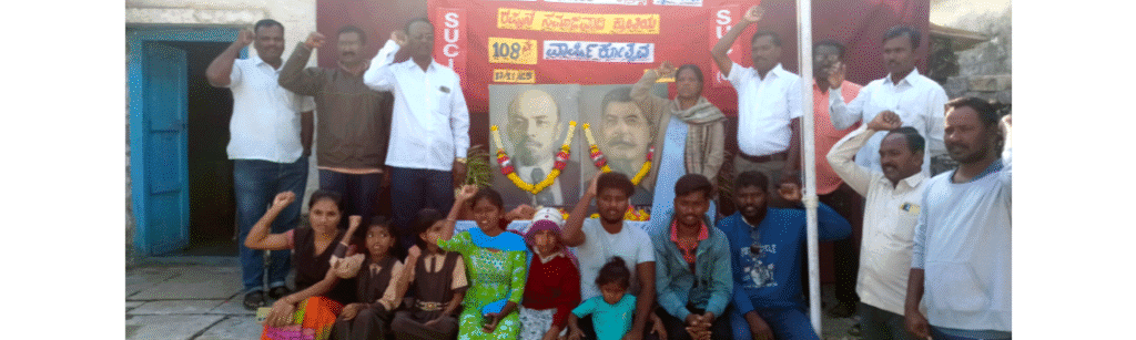 ಪಟ್ಟಣದ ಹುನುಮಾನ ನಗರದಲ್ಲಿ ಎಸ್’ಯುಸಿಐ (ಐ) ಪಕ್ಷದ ವತಿಯಿಂದ ಸಂಘಟಿಸಿಲಾದ ರಷ್ಯಾದ ನವೆಂಬರ್ ಕ್ರಾಂತಿಯ 108ನೇ ವರ್ಷಾಚರಣೆ ಕಾರ್ಯಕ್ರಮದಲ್ಲಿ ಪಕ್ಷದ ಧ್ವಜರೋಹಣ ನೇರವೆರಿಸಿ. ಕಾಮ್ರೇಡ್ ಲೆನಿನ್, ಕಾಮ್ರೇಡ್ ಸ್ಟಾಲಿನವರ ಭಾವಚಿತ್ರಕ್ಕೆ ಮಾಲಾರ್ಪಣೆ ಮಾಡಿ ಮಾತನಾಡಿದ ಅವರು, ರಷ್ಯಾದಲ್ಲಿ ಕಾಮ್ರೇಡ್ ಲೆನಿನ್’ರವರು ಶೋಷಿತ ಕಾರ್ಮಿಕರ ಕಮ್ಯೂನಿಸ್ಟ್ ವಿಚಾರಧಾರೆಯ ಆಧಾರದ ಮೇಲೆ ಸಂಘಟಿಸಿ ಕ್ರೂರ ಝಾರ್ ದೊರೆಗಳ ವಿರುದ್ಧ ಹೋರಾಟ ನಡೆಸಿ, 1917ರ ನವೆಂಬರನಲ್ಲಿ ಸಮಾಜವಾದಿ ಕ್ರಾಂತಿ ನೇರವೆರಿಸಿದರು ಎಂದರು.
