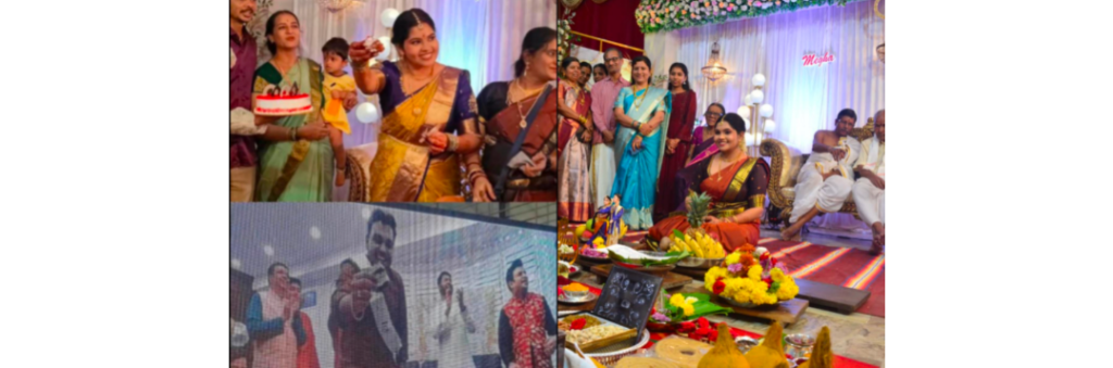 ಬ್ರಾಹ್ಮಣ ಸಂಪ್ರದಾಯದಂತೆ ಎರಡು ಕುಟುಂಬಸ್ಥರು ನಿಶ್ಚಿತಾರ್ಥ ನೆರವೇರಿಸಿದ್ದು, ಎಲ್ಇಡಿ ಸ್ಕ್ರೀನ್ಗೆ ಆರತಿ ಬೆಳಗಿ ಮಂತ್ರಾಕ್ಷತೆ ಹಾಕಿ ವಧು, ವರನಿಗೆ ಹಿರಿಯರು ಶುಭ ಕೋರಿದ್ದಾರೆ. ಕ್ಯಾಮೆರಾ ಮುಂದೆ ಯುವಕ-ಯುವತಿ ರಿಂಗ್ ಹಾಕಿಕೊಂಡು ನಿಶ್ಚಿತಾರ್ಥ ಮಾಡಿಕೊಂಡಿದ್ದಾರೆ. ಭಾರತೀಯ ಕಾಲಮಾನ ಹಾಗೂ ಕೆನಡಾದ ಕಾಲಮಾನಕ್ಕೆ 12 ಗಂಟೆಗಳ ವ್ಯತ್ಯಾಸವಿದ್ದು, ಉಡುಪಿಯಲ್ಲಿ ಬೆಳಿಗ್ಗೆ ನಿಶ್ಚಿತಾರ್ಥವಾದರೆ, ಕೆನಡಾದಲ್ಲಿ ಮಧ್ಯರಾತ್ರಿ ಈ ಕಾರ್ಯಕ್ರಮ ಜರುಗಿದೆ.