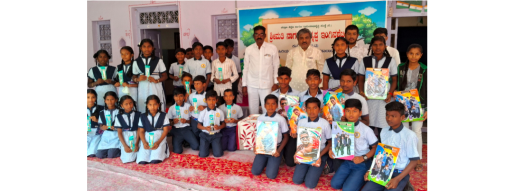 ನಗರದ ಎನ್ಸಿ ಇಂಗಿನಶೆಟ್ಟಿ, ಹಾಗೂ ನಂದಗೋಕುಲ ಶಾಲೆಯ 200 ವಿದ್ಯಾರ್ಥಿಗಳಿಗೆ ನೋಟ್ ಬುಕ್, ಪರೀಕ್ಷಾ ಪ್ಯಾಡ್, ಪೆನ್, ಪೇನ್ಸಿಲ್ ವಿತರಣೆ ಮಾಡಿದರು.