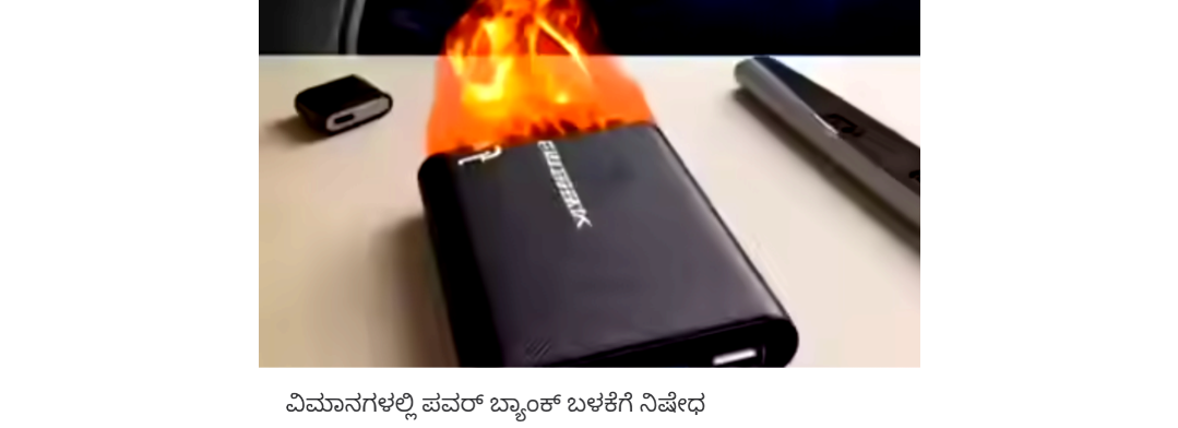 - ವಿಮಾನದ ಒಳಗಡೆ ಸೀಟುಗಳ ಬಳಿ ಇರುವ ಪವರ್ ಸಪ್ಲೈ ಸಿಸ್ಟಮ್ಗಳಿಗೆ ಪವರ್ ಬ್ಯಾಂಕ್ ಸಿಕ್ಕಿಸಿ ಚಾರ್ಜ್ ಮಾಡುವುದನ್ನು ಸಂಪೂರ್ಣವಾಗಿ ನಿಷೇಧಿಸಲಾಗಿದೆ.