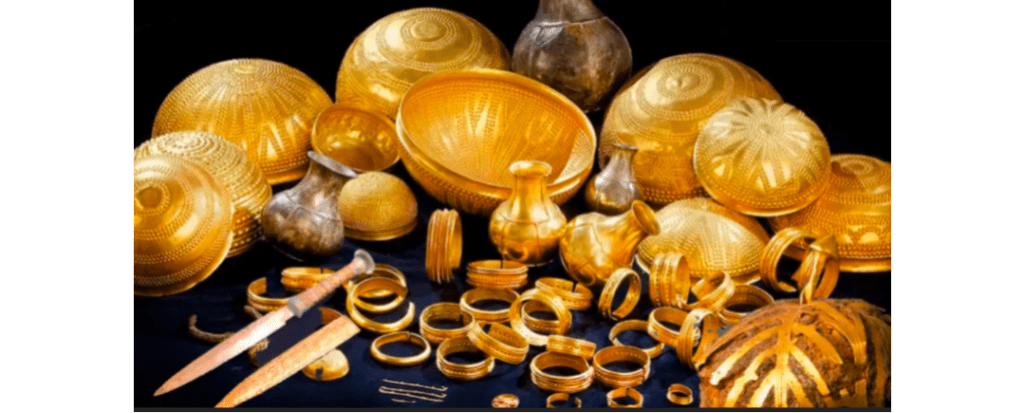 ಮತ್ತೊಂದುಕಡೆ, ಅನ್ಯಗ್ರಹದ ಲೋಹಗಳನ್ನು ಹೋಲುವ ವಸ್ತುಗಳು ಕೂಡ ಪತ್ತೆಯಾಗಿರುವುದು ಮತ್ತಷ್ಟು ಅಚ್ಚರಿಯುಂಟು ಮಾಡುತ್ತಿದೆ. ಐಬೇರಿಯನ್ ಕಂಚಿನ ಯುಗದ ಹೊಳೆಯುವ ಚಿನ್ನದ ನಿಧಿಗಳ ಸಂಗ್ರಹದ ನಡುವೆ ತುಕ್ಕು ಹಿಡಿದ ವಸ್ತುಗಳು ಪತ್ತೆಯಾಗಿದ್ದು, ಇವು ಭೂಮಿಯ ಮೇಲಿನ ವಸ್ತುಗಳಲ್ಲ, ಬದಲಿಗೆ ಅನ್ಯಗ್ರಹದ ವಸ್ತುಗಳು ಎನ್ನುವುದು ತಿಳಿದುಬಂದಿದೆ. ಚಿನ್ನದಿಂದ ಅಲಂಕರಿಸಲ್ಪಟ್ಟ ಬಳೆ ಮತ್ತು ತುಕ್ಕು ಹಿಡಿದ ಟೊಳ್ಳಾದ ಗೋಳಾರ್ಧವುಳ್ಳ ಆಭರಣಗಳನ್ನು ಸಂಶೋಧಕರು ಕಂಡುಕೊಂಡಿದ್ದಾರೆ, ಇವು ನೆಲದ ಕೆಳಗಿನಿಂದ ಲೋಹದಿಂದಲ್ಲ, ಆದರೆ ಆಕಾಶದಿಂದ ಬಿದ್ದ ಲೋಹಗಳು ಎಂದು ಅಂದಾಜಿಸಲಾಗಿದೆ.