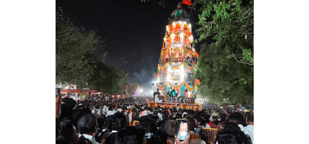 ಎಲ್ಲೆಡೆ ವಿದ್ಯುತ್ ದೀಪಗಳು ಝಗಮಗಿಸಿದವು. ಈ ಮುಂಚೆ ಬೆಳಗಿನ ಜಾವ ಐದಾರು ತಾಸು ಅಪಾರ ಭಕ್ತರು ಹಸಿ ಮೈಯಿಂದ ಆಗ್ಗಿ ತುಳಿದು ಹರಕೆ ಸಲ್ಲಿಸಿದರು.