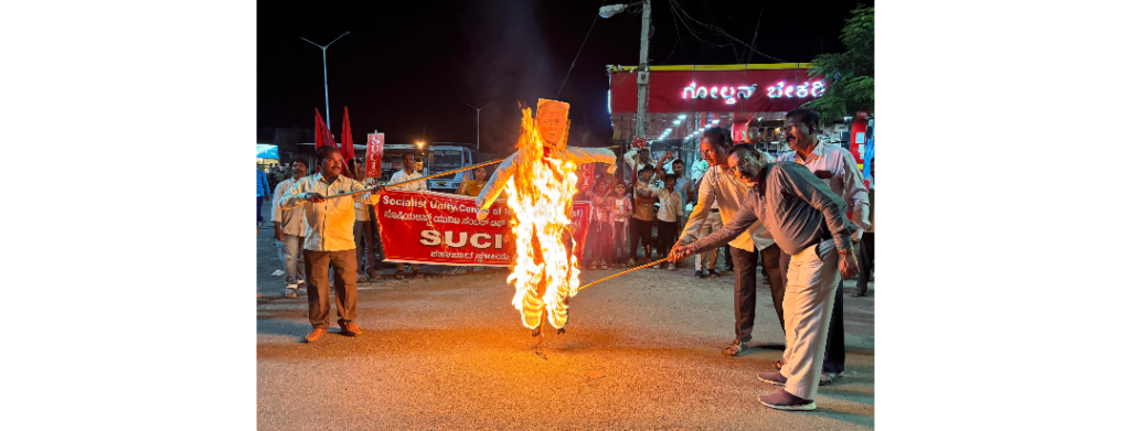 ನಗರದ ಬಸವೇಶ್ವರ ವೃತ್ತದಲ್ಲಿ ಸೋಮವಾರ ಸಂಜೆ ಎಸ್’ಯುಸಿಐ (ಕಮ್ಯೂನಿಸ್ಟ್) ಪಕ್ಷದ ವತಿಯಿಂದ ಆಯೋಜಿಸಲಾಗಿದ್ದ ಅಮೆರಿಕ-ಇಸ್ರೇಲ್ ಸಾಮ್ರಾಜ್ಯಶಾಹಿಗಳು ಇರಾನ್ ಮೇಲೆ ಮಾಡಿರುವ ದಾಳಿಯನ್ನು ವಿರೋಧಿಸಿ ಪ್ರತಿಭಟನಾ ಪ್ರದರ್ಶನ ಉದ್ದೇಶಿಸಿ ಮಾತನಾಡಿದ ಅವರು, ವಿಶ್ವದ ಸಾರ್ವಭೌಮ ರಾಷ್ಟ್ರದ ಮೇಲೆ ಯಾವುದೆ ರಾಷ್ಟ್ರವು ದಾಳಿ ಮಾಡುವುದು ಅಂತರರಾಷ್ಟ್ರೀಯ ಕಾನೂನು ಉಲ್ಲಂಘನೆಯಾಗಿದೆ. ಇದನ್ನು ಅಮೆರಿಕ, ರಷ್ಯಾ ಮತ್ತು ಇಸ್ರೇಲ್ ಸಾಮ್ರಾಜ್ಯಶಾಹಿ ದೇಶಗಳು ನಿರಂತರವಾಗಿ ಉಲ್ಲಂಘನೆ ಮಾಡುತ್ತಿವೆ. ವಿಶ್ವಸಂಸ್ಥೆಯು ಇವರ ಅಟ್ಟಹಾಸವನ್ನು ಮಟ್ಟಹಾಕಲು ಯಾವುದೆ ಪ್ರಬಲವಾದ ಕ್ರಮಗಳನ್ನು ತೆಗೆದುಕೊಳ್ಳುತ್ತಿಲ್ಲ. ಅದು ಅವರ ತಾಳಕ್ಕೆ ತಕ್ಕಂತೆ ಕುಣಿಯುತ್ತಿರುವುದು ಒಂದು ಕಡೆಯಾದರೆ, ಉಳಿದ ರಾಷ್ಟ್ರಗಳು ಮೌನವಾಗಿರುವುದರಿಂದ ಅಮೆರಿಕ- ಇಸ್ರೇಲ್ ಭಯೋತ್ಪಾದನೆ ಮುಂದುವರೆಸುತ್ತಿದೆ. ಶಾಲೆ ಮತ್ತು ಆಸ್ಪತ್ರೆಗಳ ಮೇಲೆ ದಾಳಿ ಮಾಡುವುದರ ಮೂಲಕ ಮಕ್ಕಳ ಹಾಗೂ ಜನಸಾಮಾನ್ಯರ ಮಾರಣಹೋಮ ನಡೆಸುತ್ತಿರುವುದು ರಾಕ್ಷಸಿಕೃತ್ಯವನ್ನು ನಮ್ಮ ಪಕ್ಷ ಎಸ್.ಯು.ಸಿ.ಐ (ಸಿ) ಯು ಪ್ರಬಲವಾಗಿ ವಿರೋಧಿಸುತ್ತದೆ, ಈ ಕೂಡಲೆ ನರಹಂತಕ ಅಮೆರಿಕ-ಇಸ್ರೇಲ್ ಸಾಮ್ರಾಜ್ಯಶಾಹಿಗಳು ಇರಾನ್ ಮೇಲೆ ಮಾಡಿರುವ ದಾಳಿಯನ್ನು ಹಿಂಪಡೆಯುವಂತೆ ಒತ್ತಾಯಿಸುತ್ತೆವೆ ಎಂದರು.